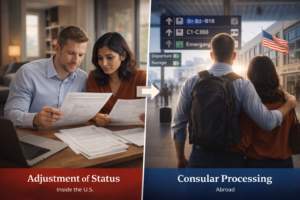 Once eligibility is confirmed, the next critical step is deciding how you will apply for a marriage green card in Dallas—through Adjustment of Status (AOS) or Consular Processing. This decision directly affects your timeline, travel ability, and overall experience.